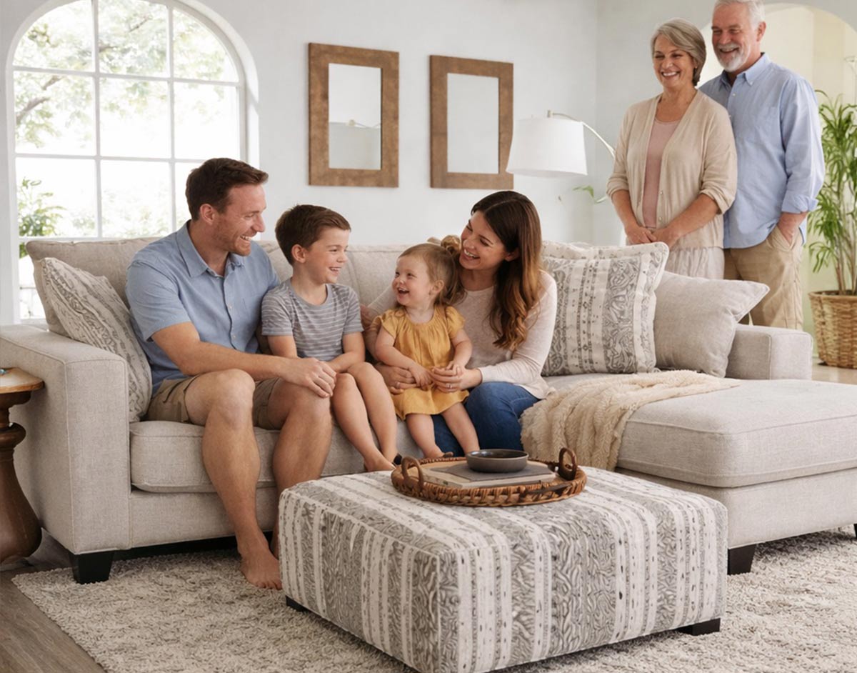 Relax in refined comfort with the Camden Sofa, where modern simplicity meets everyday elegance. Upholstered in a soft neutral fabric, it features deep seating, plush cushions, and gently rounded arms for a look that’s both timeless and versatile. Accent pillows in complementary patterns add layered style, making it the perfect anchor piece for your living room.